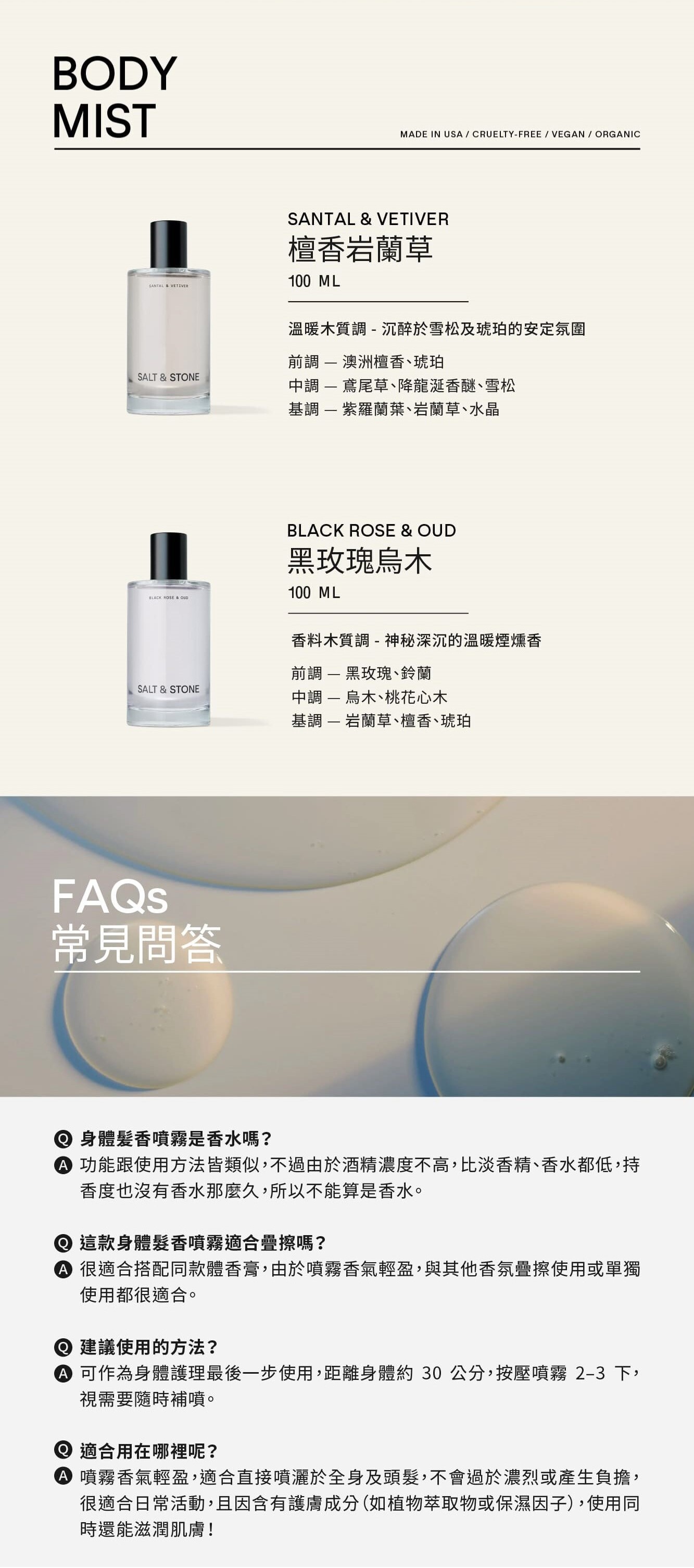 • 建議可均勻噴灑於肌膚或髮梢