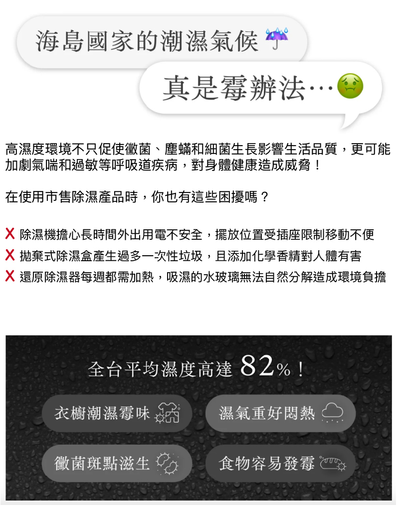 *每盒除濕器中皆附一包 ”除濕劑,若需更多除濕劑,請另外選購