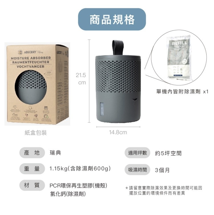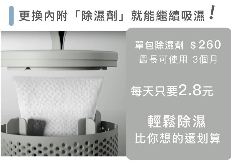 *每盒除濕器中皆附一包 ”除濕劑(600g),若需更多除濕劑,請另外選購