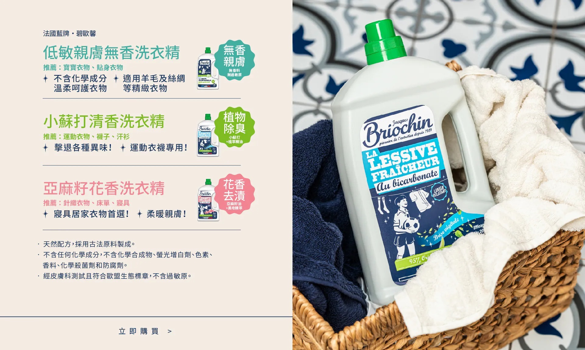 • 採用小蘇打、植萃精油等古法原料製成