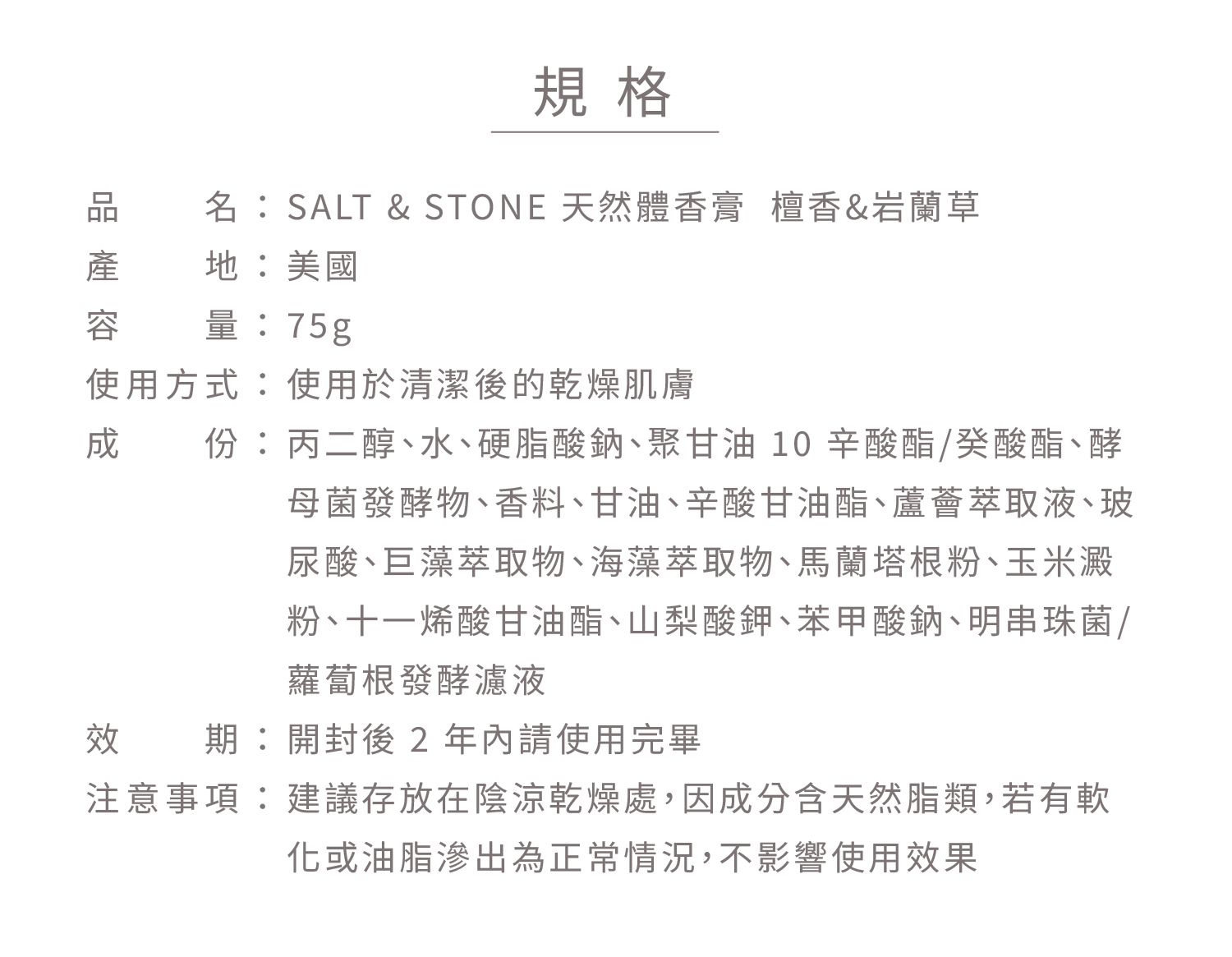 〔SALT & STONE〕天然體香膏 檀香&岩蘭草(敏感適用)