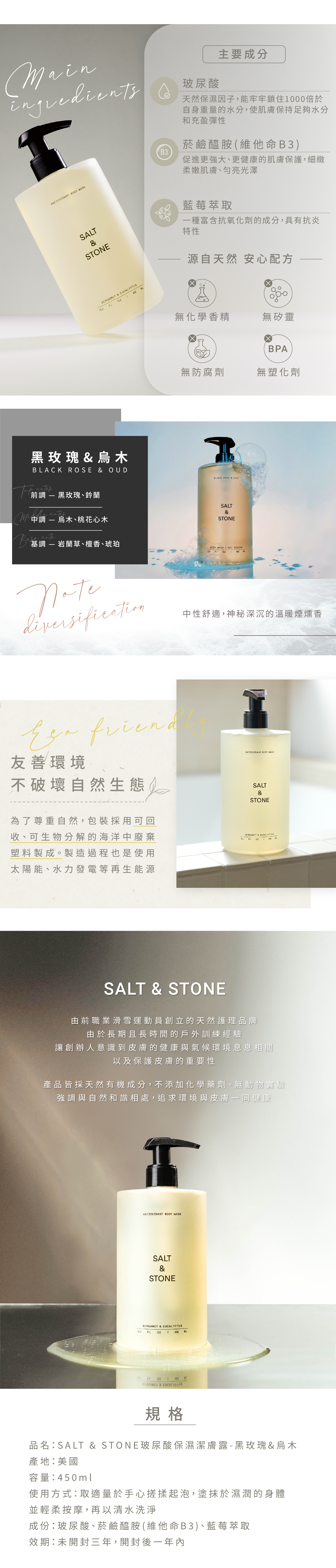〔SALT & STONE〕保濕玻尿酸潔膚露 黑玫瑰&烏木